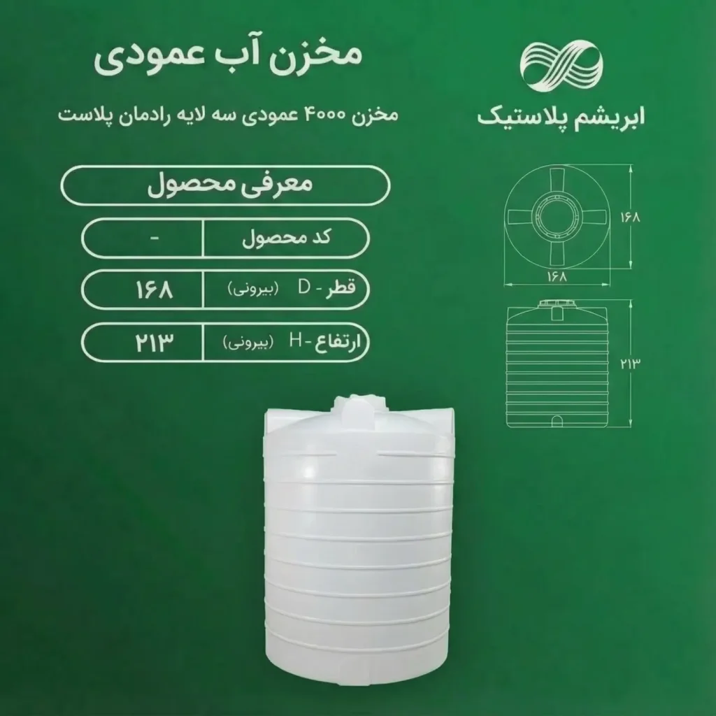 مخزن پلی اتیلن 4000 لیتری عمودی رادمان پلاست
