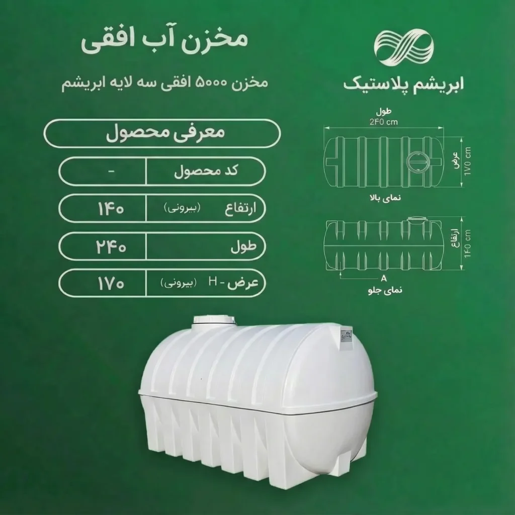 مخزن پلی اتیلن ۵۰۰۰ لیتری افقی سه لایه ابریشم