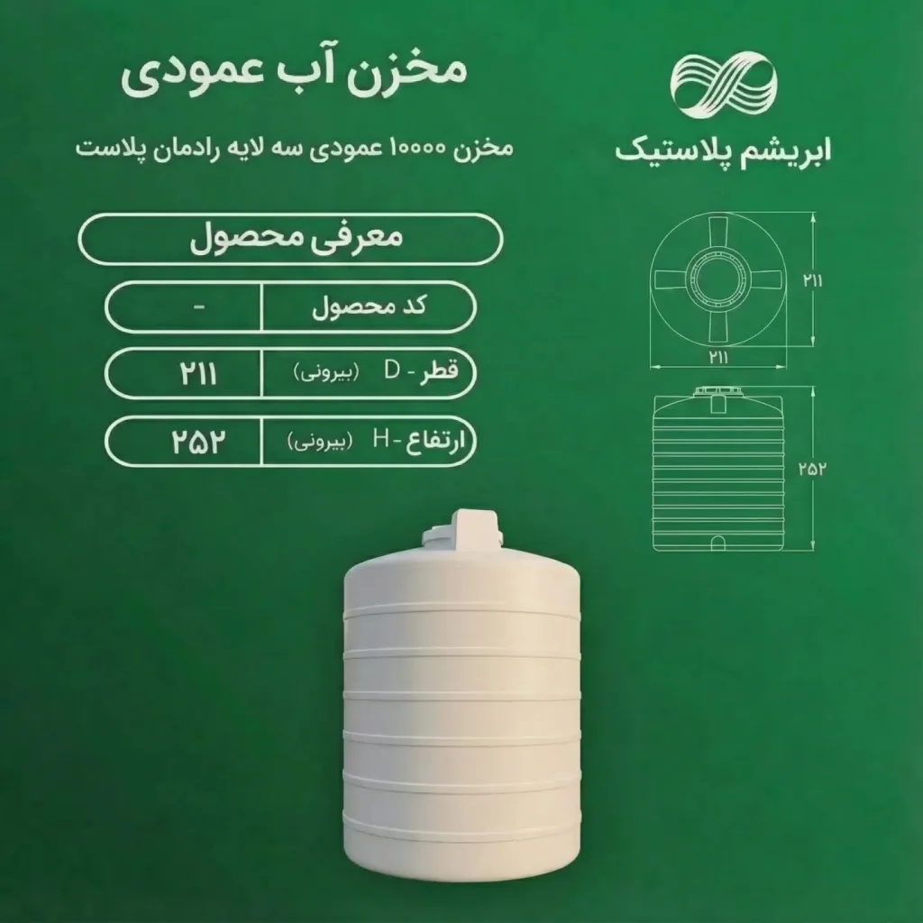 مشخصات فنی مخزن ۱۰۰۰۰ لیتری عمودی سه لایه رادمان پلاست