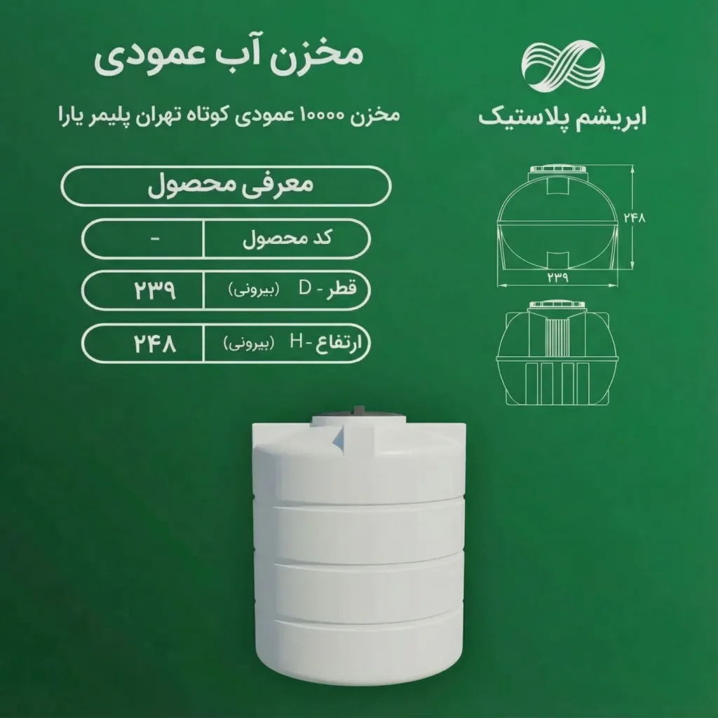 مخزن ۱۰۰۰۰ لیتری عمودی کوتاه تهران پلیمر یارا | بررسی کامل، ویژگیها و راهنمای خرید