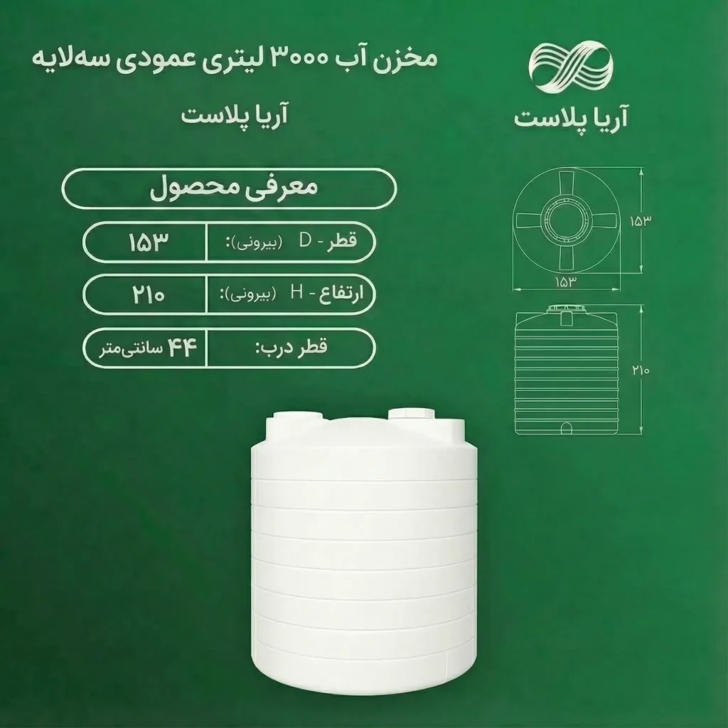 اگر بهدنبال مخزنی هستید که از نظر فنی پاسخگوی نیاز شما باشد، از نظر اقتصادی ارزش خرید داشته باشد و در عین حال خیال شما را از بابت کیفیت آب و دوام محصول راحت کند، مخزن ۳۰۰۰ لیتری عمودی سهلایه آریا پلاست بدون تردید یکی از بهترین انتخابهای موجود در بازار محسوب میشود.