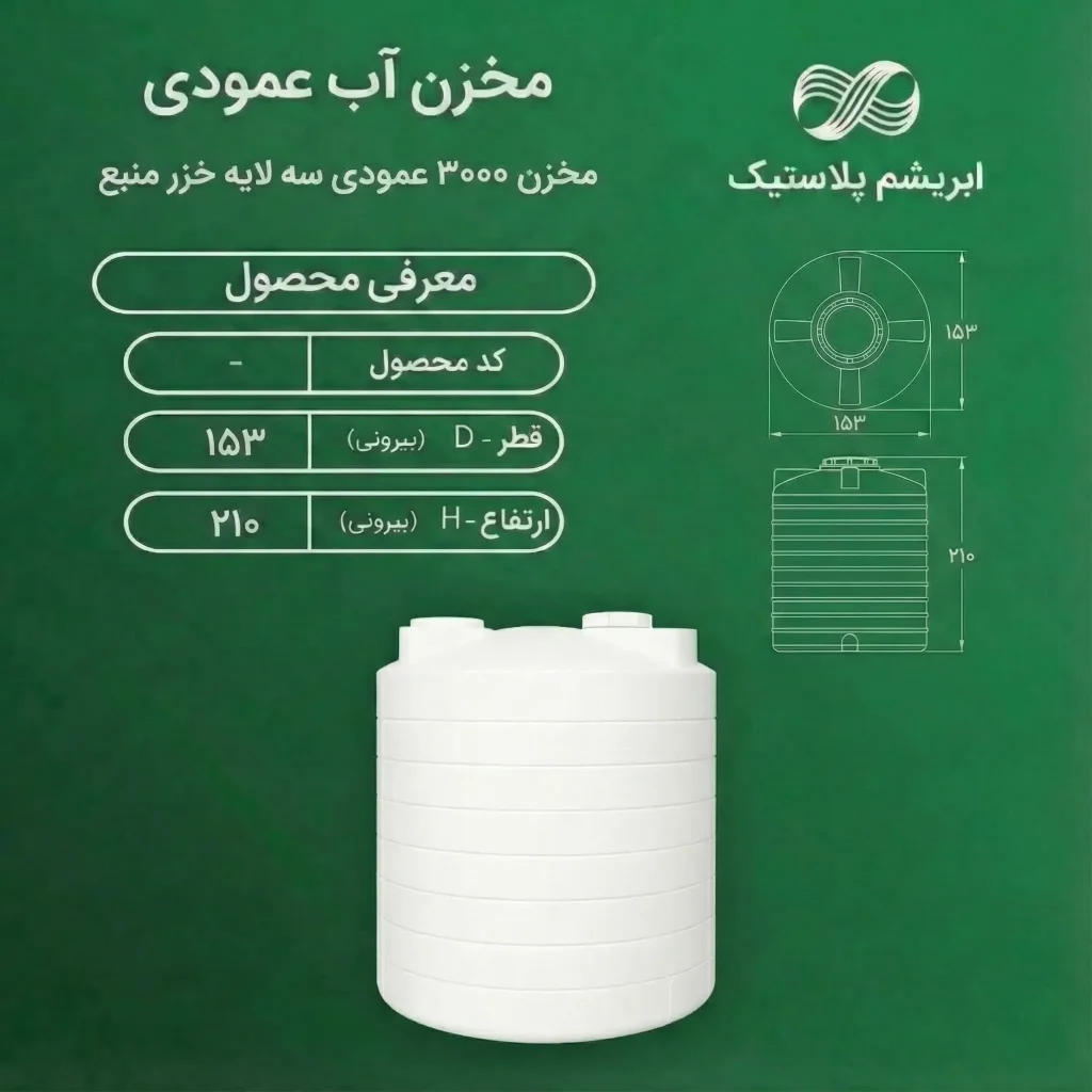 مشخصات فنی مخزن آب عمودی سهلایه ۳۰۰۰ لیتری