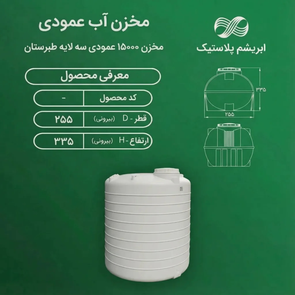 مخزن ۱۵۰۰۰ لیتری عمودی سه لایه طبرستان | بررسی ویژگیها، مشخصات، ابعاد و کاربردها